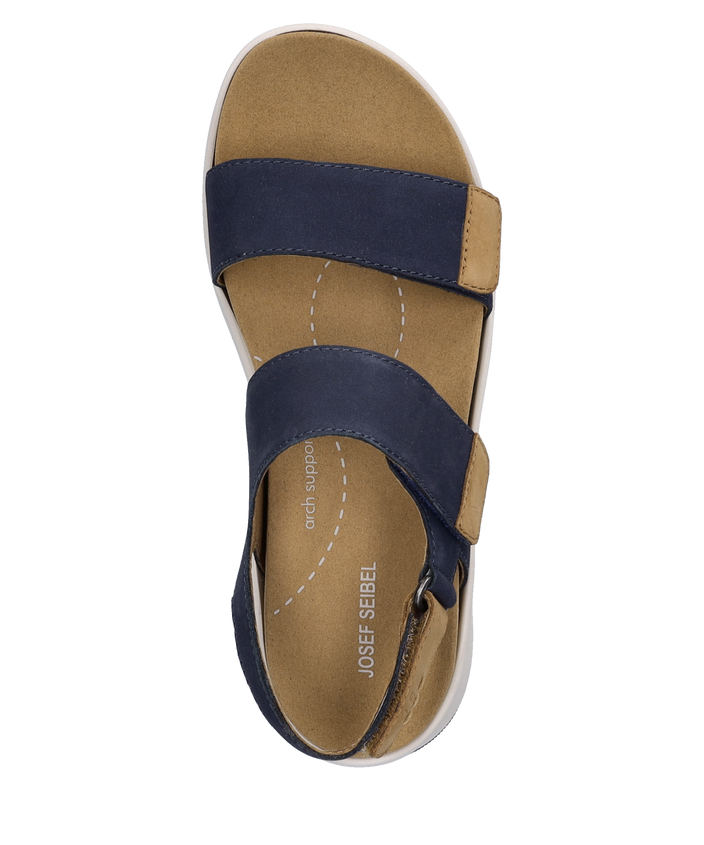 Modèle IBIZA de la marque Romika designed by Josef Seibel. Pratique et confortable, cette sandale offre un excellent chaussant grâce aux 3 brides auto-agrippantes ajustables. La semelle réduit les chocs au minimum, pour une marche tout en douceur et sans fatigue.