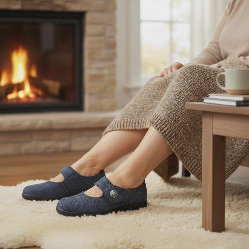 La doublure textile garantit un chaussant optimal et un maintien parfait du cou-de-pied et du talon d'Achille. Ce modèle est idéal pour les personnes souffrant d'un hallux valgus / rigidus, d'orteils marteaux, de déformations, etc. La partie avant étant en haute, la pantoufle offre beaucoup de place à votre votre pied. De plus, nous sommes sur une largeur K, donc très large.