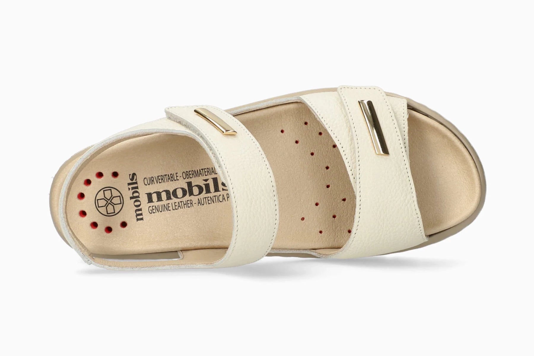 Féminine et élégante, cette sandale à talon compensé, garantit un chaussant idéal. La semelle intérieure amovible qui intègre la SOFT-AIR Technologie et le SHOCK-ABSORBER présent dans la semelle extérieure, contribuent à réduire les chocs au minimum, pour une marche tout en douceur et sans fatigue. Tous les modèles MOBILS ergonomic sont conçus avec un supplément de largeur et offrent ainsi plus de place à l'avant des chaussures. Cette sandale dispose de brides à bandes agrippantes qui sont joliment décorées d'un ornement. La doublure en cuir favorise un climat sain et amène un confort exceptionnel.