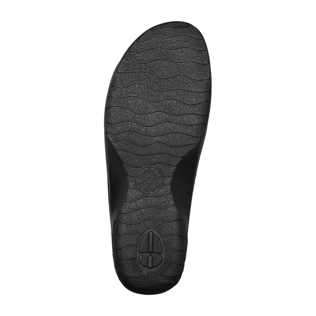 Pratique et confortable, cette mule vous accompagnera aussi bien au quotidien que lors de vos occasions plus habillées. La semelle intérieure amovible qui intègre la SOFT-AIR Technologie et le SHOCK-ABSORBER, présent dans la semelle, contribuent à réduire les chocs au minimum pour une marche souple et sans fatigue. Le MATELASSAGE INTÉGRAL, un rembourrage exceptionnel entre la doublure et le cuir naturel, assure un confort optimal en enveloppant vos pieds et en évitant qu'ils se trouvent comprimés dans la chaussure. Les brides auto-agrippantes ajustables assurent un chaussant parfait. La doublure en cuir assure une hygiène saine du pied.