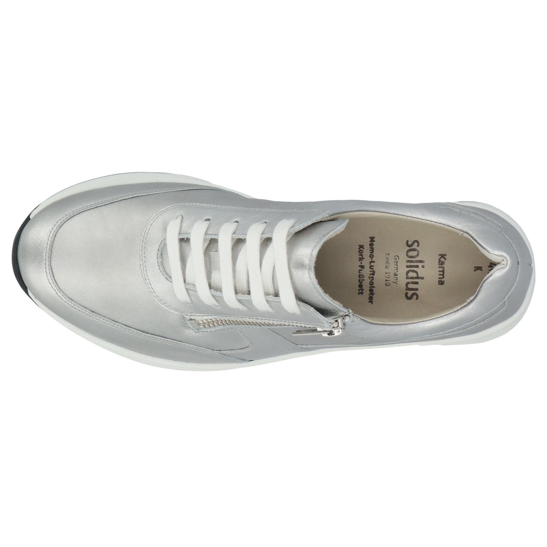 Modèle Karma de la marque Allemande Solidus : Ce sneaker séduit par son confort incomparable. Cette chaussure au look sport décontracté séduit par son confort incomparable. La semelle intérieure amovible qui intègre la technologie SOFT-AIR et la semelle extérieure dotée du SHOCK-ABSORBER, réduisent les impacts au minimum et garantissent une marche souple et sans fatigue. Son MATELASSAGE INTÉGRAL offre un bien-être supplémentaire. En plus du laçage, elle est facile à chausser grâce à sa fermeture à glissière latérale. La doublure en cuir offre un climat sain à l'intérieur de la chaussure.